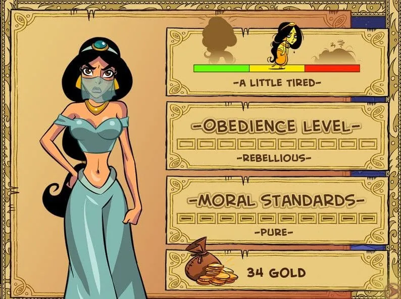 And itās not just about Jasmine! Your interactions with key characters like the stern Vizier, the playful handmaiden Lola, or the mystical Genie set relationship flags. These hidden flags determine whose help you can get, who might become an obstacle, and which unique scenes you can experience. The entire Princess Trainer Gold Edition world reacts to the metric-driven story youāre writing with every click.